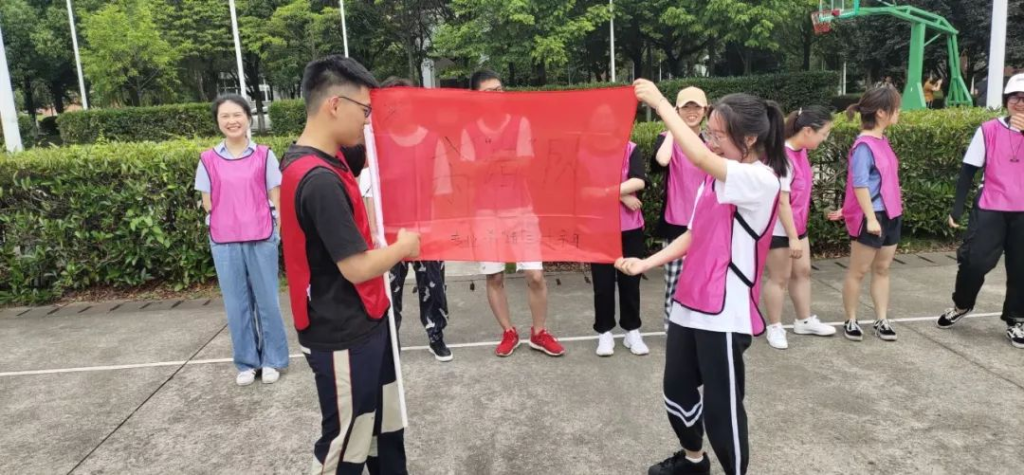 堪比火鸡热辣的夏日大作战 首页 最新资讯 新闻动态 / 2019年06月10日 6月9号,阳光微醺,是个适合素拓的好时间,于是分别于上午8时至12时在操场,下午1时至4时在体育馆,17、18级国际学院和中德设计与传播学院学生干部—展开了一场素质拓展活动。活动内容为在教官的领导下,根据游戏环节将学生分成两组,小组成员互相配合,争取在规定时间内完成指定任务。按照比赛规则,优先者取胜,时间上落后的队伍将获得相应的惩罚,展开项目分别为挑战NO1 协力前进 驿站传书 极速60秒这次活动旨在提高学生干部的综合素质、凝聚团队精神,同学们也因此收获颇丰。