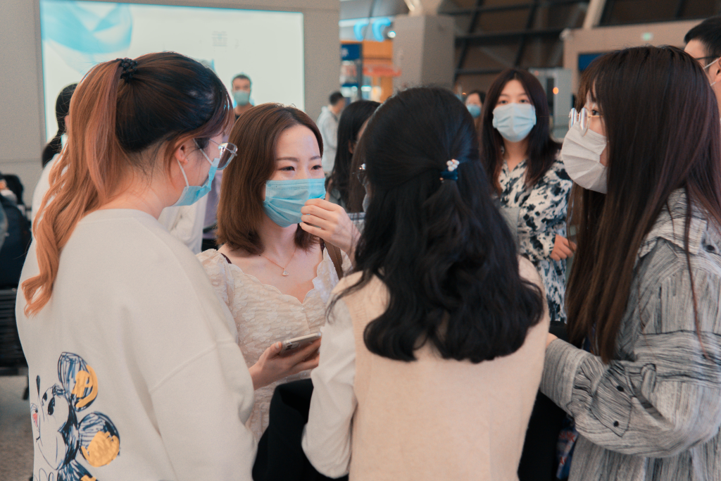 在师生间欢声笑语中,依依不舍的离别情绪也被渐渐消弭了。在机场候机厅里,学生与前来送机的家长互慰平安,相道嘱咐。张宜平副院长和班主任老师们耐心地为学生家长们答疑解惑,让学生与家长们更加放心,学成归来的信心更加坚定。