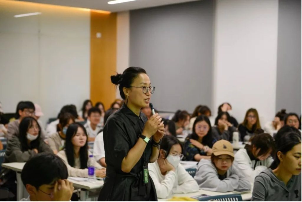 随后,高迪老师向同学们介绍了视传专业的就业方向,并向他们展现学院科学细致的学业规划。高老师指出,现下产品的整个设计都是由品牌设计来引导的。而中德的视觉传达专业,不同于普通相关专业,从大一就开始培养学生的品牌概念和思维,为同学们以后的学习工作之路打下坚实的基础。