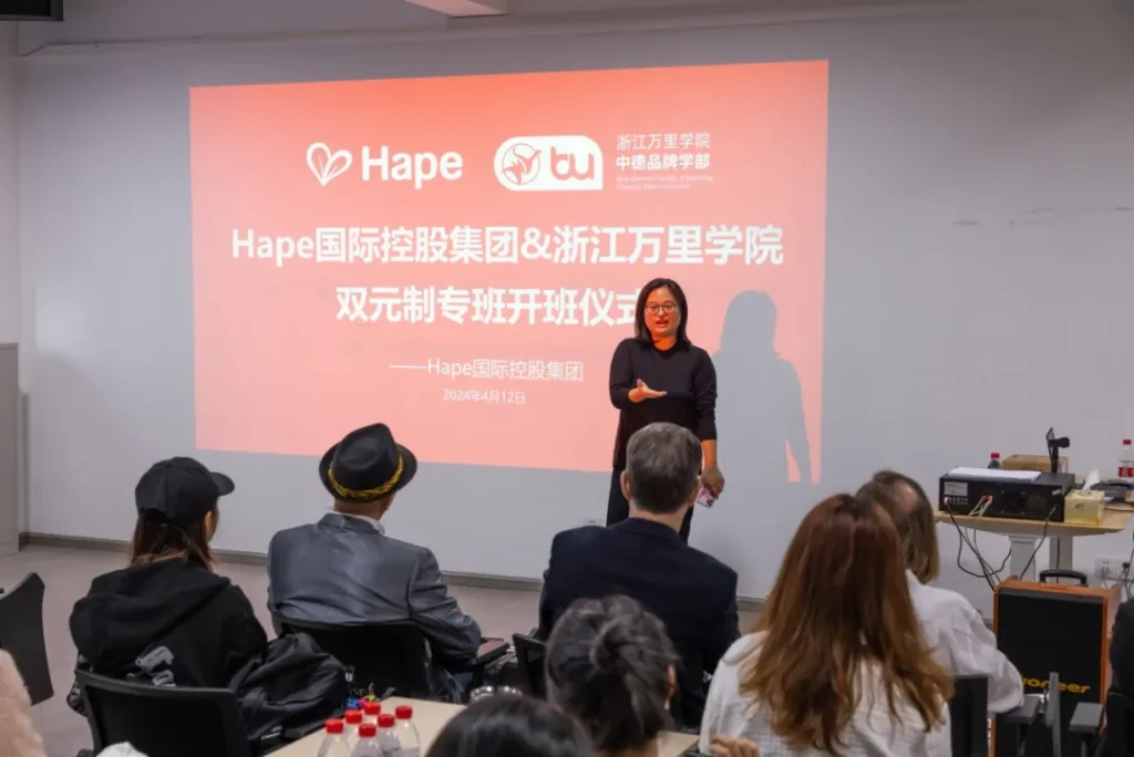 Hape集团副总裘莹莹对中德品牌学部师生的到来表示欢迎。她提到,到目前为止,Hape集团与中德品牌学部合作的项目已经有了许多不错的产出,部分已被投入市场。她相信在未来两年的合作中,“双元制”专班的同学们能与各部门一起呈现出更好的成果。