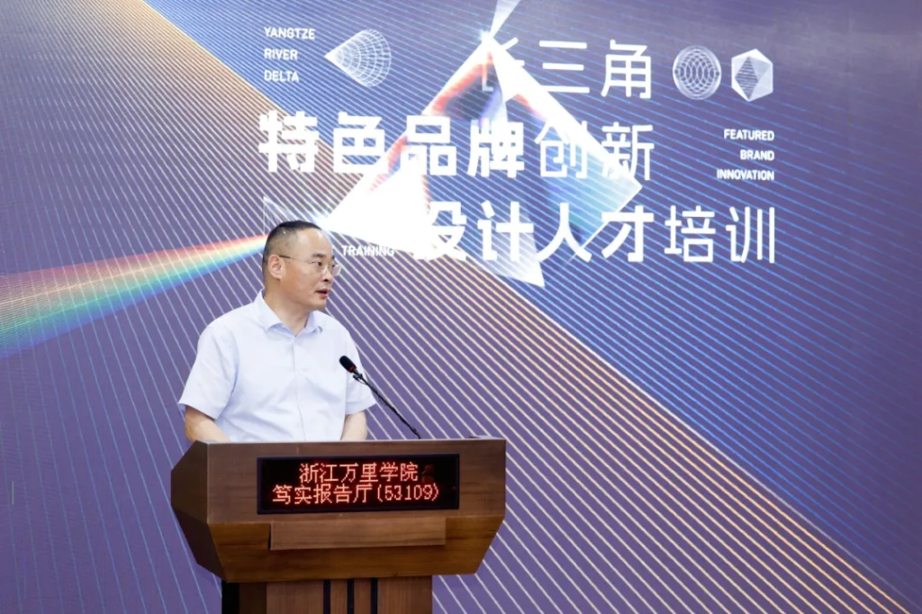 7月1日,国家艺术基金2024年度艺术人才培训资助项目——“长三角特色品牌创新设计人才培训”开班仪式,在浙江万里学院钱湖校区举行。中国广告协会会长张国华、浙江万里学院杨震峰副校长、宁波美术馆魏惠东副馆长、宁波大学潘天寿艺术学院侯冠华教授、宁波市文化馆视觉艺术中心朱启仁主任、宁波大学人文与传媒学院庞菊爱副教授和全体培训学员近百人出席开班仪式。开班仪式由项目负责人、中德品牌学部主任、中德设计与传播学院院长张宜平主持。