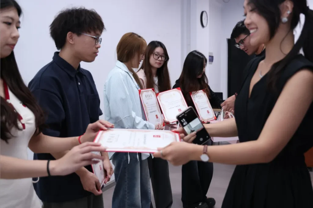 第一步,由学校老师与企业导师共同为“双元制”特色班同学第一阶段的学习进行联合评分。评价同学们在Quadrilla、Korko、Trido等产品推广与Hape的品牌运营工作的活动策划与提案、宣传视频拍摄、线下活动筹备、产品配色与包装设计、Uniche产品首播等工作中的表现。TC中国市场部的徐誉茜、张郁洁、朱奕杭,市场传播部的陈芝伊与BT05的陆锦骏被评选为优秀学员。