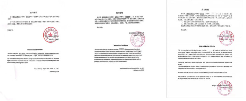 “尝试”,是金依洁总结自己目前所有经历得出的。跨专业跨文化的思维、沟通协商能力、持续学习的态度……她认为这些都是作为营销人不可或缺的品质。而“尝试”便是她获取这些能力的不二法门。在国内时,她担任中德招协负责人、中德品牌学部团学体育部干事、副班长、学务助理。学习、参与竞赛之余,她还会参与学部的暑期社会实践,以及企业、机构的实习。在本专业学习的基础上,金依洁还辅修了浙江工商大学跨境电商微专业。她如一块海绵,抓紧所有时间,充实自己。