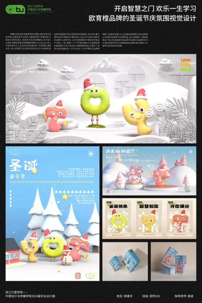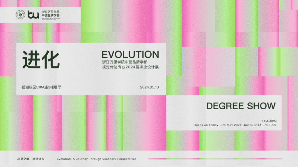 此次毕业展以“进化:一场视觉的探索之旅(Evolution:A Journey through Visionary Perspectives)”为主题,展出的是2024届视觉传达设计专业的毕业生为界界乐、至源农场、贝乐多、初生果、欧育樘这五个品牌设计的品牌视觉传播与推广方案。此次展览旨在呈现学生们四年品牌设计之旅的进阶成果,全方位展示他们的成长轨迹与创新精神。