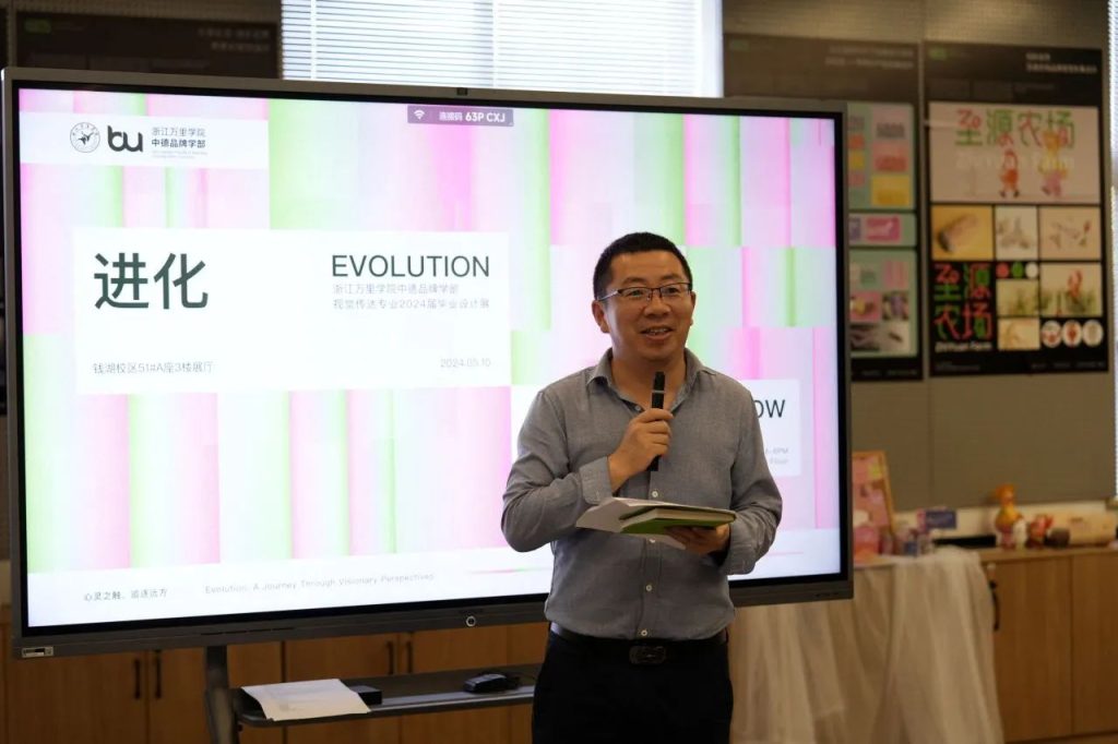 中德品牌学部主任、中德设计与传播学院院长张宜平致开幕辞。此次“进化”这一主题有两层含义,一方面指的是2024届视觉传达设计专业学子经过四年潜心修学,进化成设计师;另一方面则说的是学子们为五个学部合作品牌设计视觉传播方案,助力品牌视觉优化。张宜平院长鼓励毕业生们继续保持创新精神和实践能力,为品牌设计领域的发展贡献自己的力量。