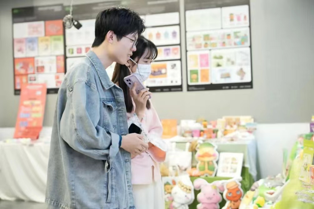 来自2024届视觉传达设计专业的毕业生们在展览现场为各位观展人员悉心解说作品的设计理念。