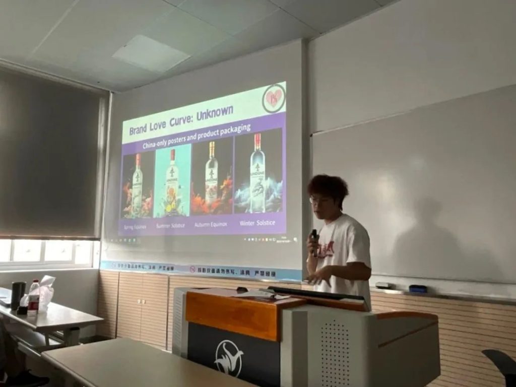 学生们分成一个个小组,针对中国的食品饮料市场进行调研,帮助Undone找准品牌市场定位,分析其竞争对手,再与中国国情、文化背景等相结合制定品牌本土化传播方案。