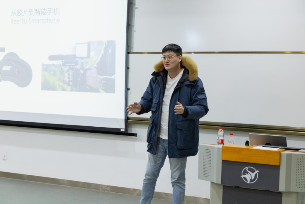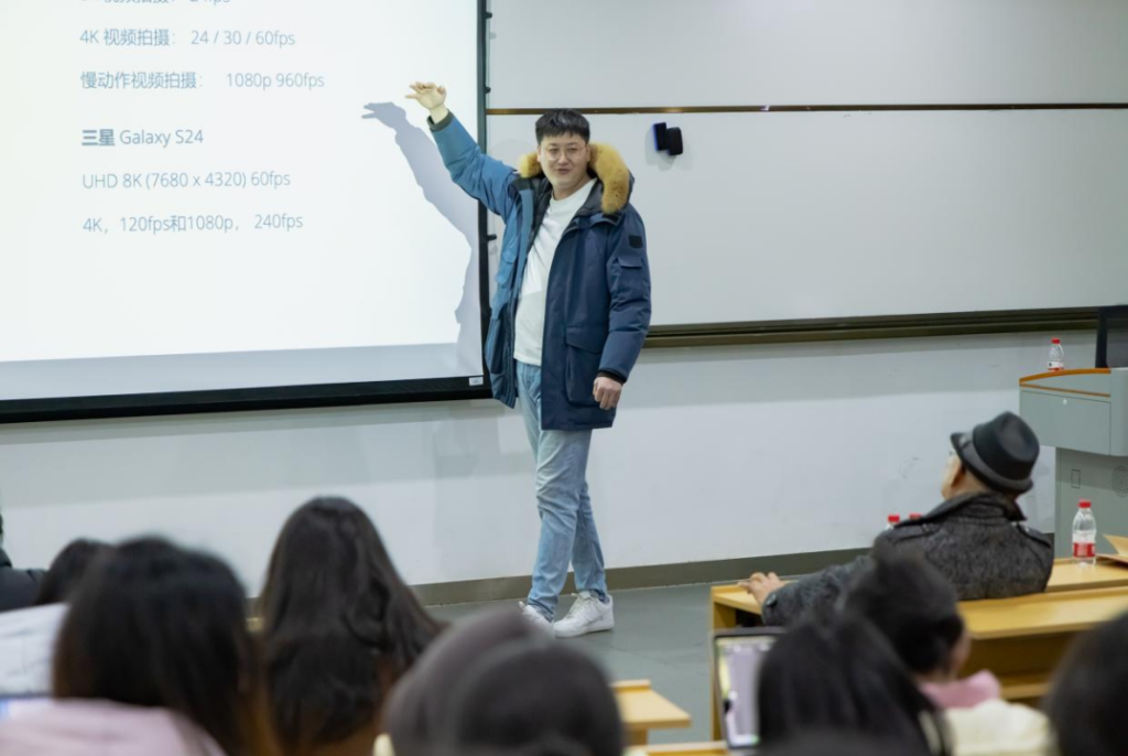 讲座尾声,李帅博士分享了自创的影片片段,并鼓励同学们参与现在正处于作品征集阶段的2024全球青年多媒体竞赛和MINA电影节,灵活运用移动叙事,多尝试用不同的创意模式,表达出自己的想法,更好发挥移动叙事在品牌故事中的作用。