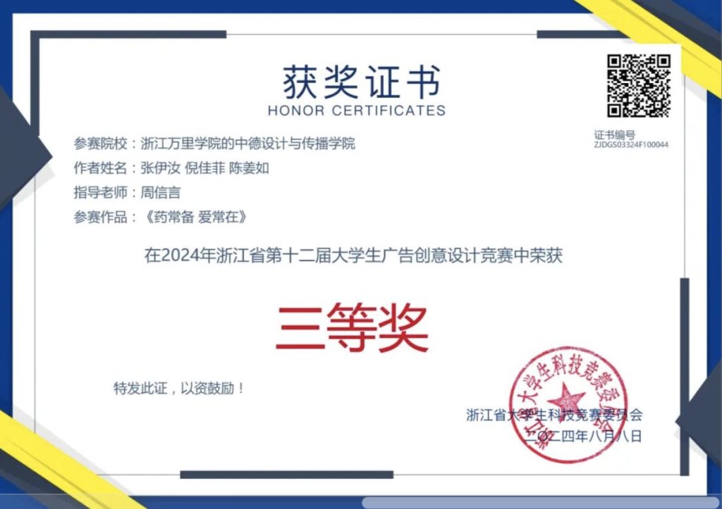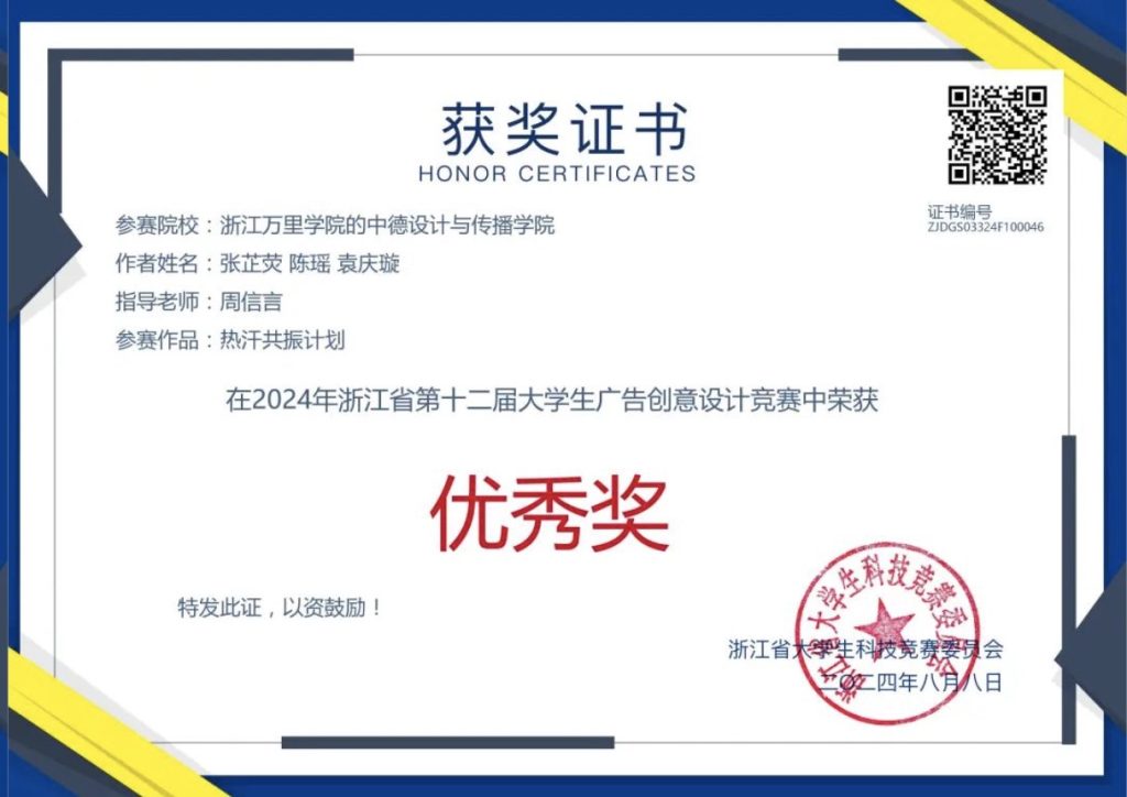 为促进以赛促学、以赛促教、赛教融合的育人实践,中德品牌学部高度重视第12届浙江省大学生广告创意设计竞赛暨第16届全国大学生广告艺术大赛,号召广告学和视觉传达设计专业学子积极响应。他们也在大赛中展现出了的独特创意和扎实的专业技能,共获得国家级奖项1项、省级奖项4项(一等奖2项、三等奖2项)。