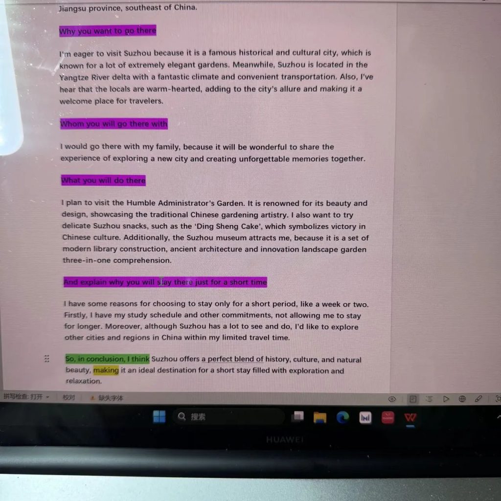 “我在短时间内显著提升了雅思写作水平,也是因为我根据老师在课堂中的讲述,找到了一套系统化的写作训练方法。”成语说。她在备考写作时,特别注重积累同义替换词,通过把阅读和听力中学过的单词,巧妙地运用在写作中,以此丰富文字表达,避免词汇单一,让文章更加生动。同时,她还通过多加练习固定开头和结尾句,并在中间段落使用逻辑衔接词,使文章层次分明、逻辑流畅。
