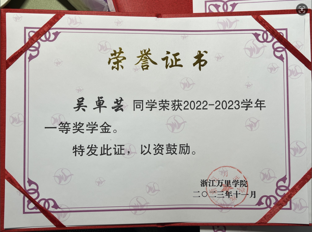 “真正的学术力,是理论与实践的共振。”吴卓芸以连续三年专业第一大三GPA4.31)、雅思7.0的优异成绩成为21级广告学专业的学术典范。大学四年,共获国家奖学金、浙江省政府奖学金、三好学生、优秀学生干部等国家级、省级和校级奖项30余项。