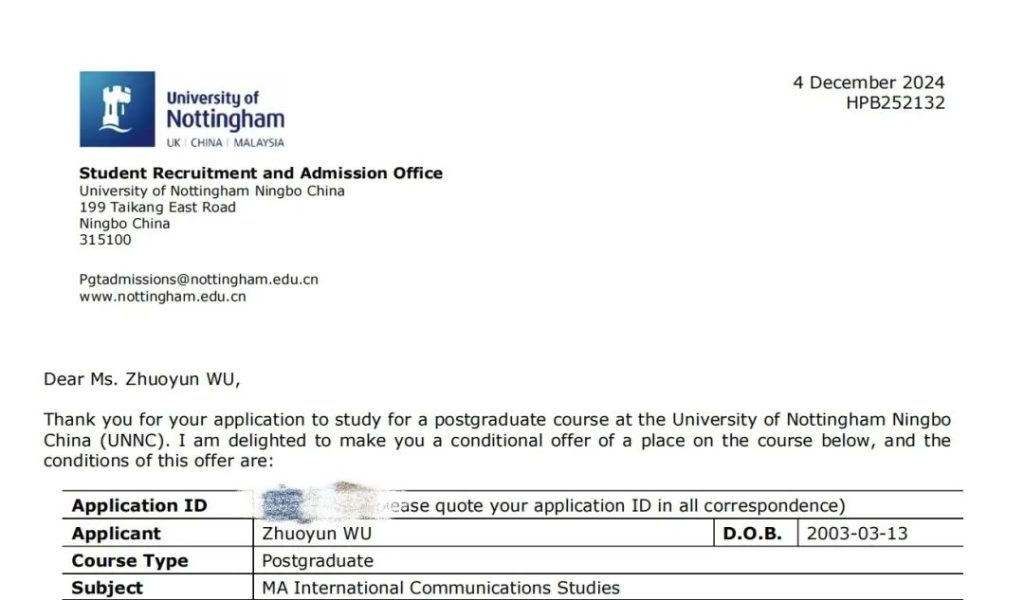 本期“We’re中德人”访谈主人公来自21级广告学2+2专业的吴卓芸。“我的大学生活犹如一场‘双轨交响’——在中德品牌学部的专业课堂里深耕理论沃土,于国际化教育实践中汲取成长养分。”手握格拉斯哥大学(QS全球第78)伯明翰大学(QS全球第80)宁波诺丁汉大学西交利物浦大学四所顶尖学府研究生录取通知书的她,用“成长型思维”为这段旅程写下注解:在东方严谨与西方创新的碰撞中,探索品牌世界的无限可能