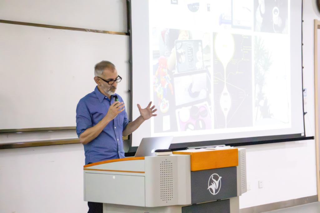 Pourian教授以个人经历为引子,着重强调了兴趣在个人发展中的重要性。他回溯了自己的职业生涯起点——平面设计,到探索产品设计及时尚设计领域,最终进入高等学府从事教育工作,这一系列的职业转变皆根植于他对设计艺术的浓厚兴趣。此外,他相继在日本、香港、珠海等多地积累工作经验。通过这些丰富而多元的人生经历,Pourian教授向在座的师生们传达了一个重要信息:即便未来的路途充满未知,自己亦未曾预见每一次职业转折的具体方向,但关键在于始终追随内心的兴趣,勇于尝试与探索。