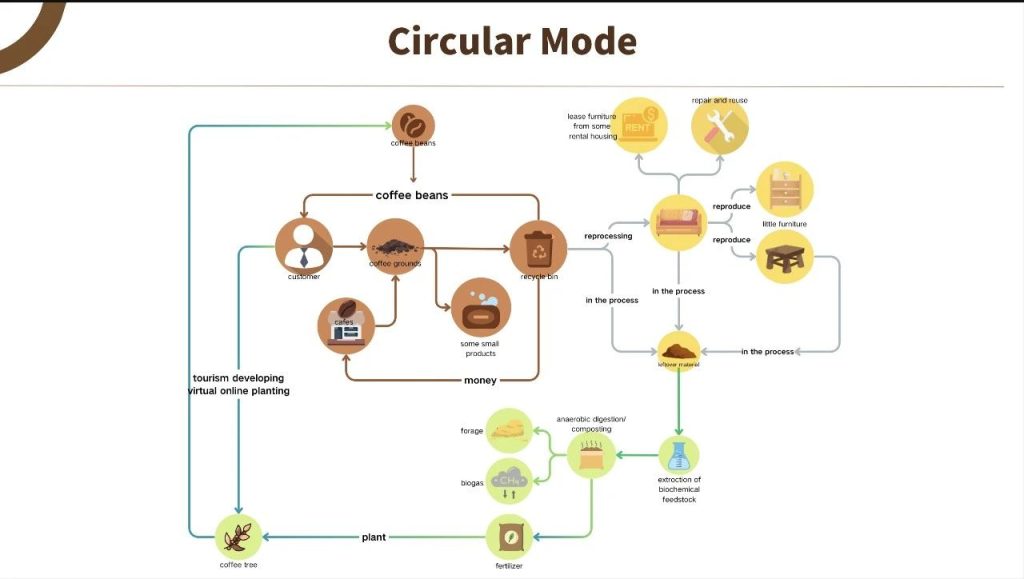 作品介绍:项目致力于废弃咖啡渣的循环利用,契合可持续经济发展的商业模型。通过从家庭和咖啡店广泛收集咖啡渣,我们从家庭与咖啡店收集咖啡渣,将其制成咖啡渣复合材料,进而打造环保家具。同时,凭借完善的售后服务体系,有效确保家具的长期使用与价值延伸,减少废弃物排放,实现经济与环境效益双丰收。