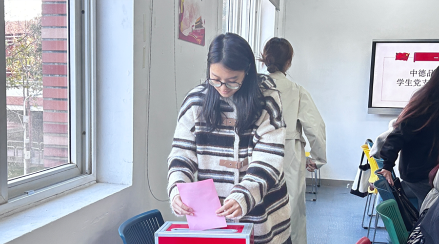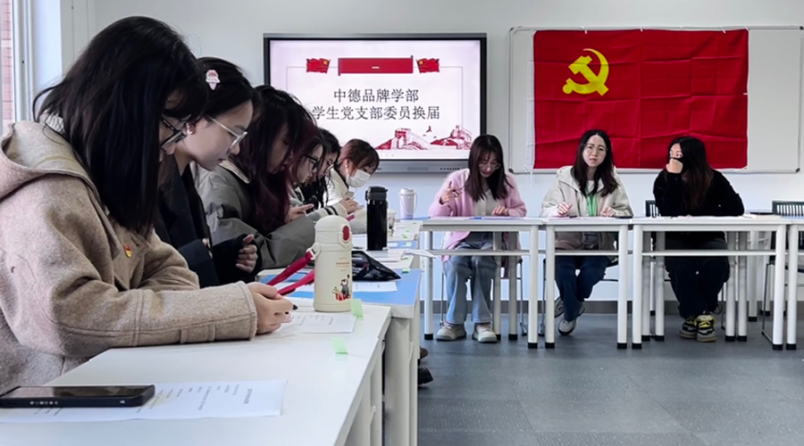 2023年12月6日中德品牌学部学生党支部于3216会议室召开中德品牌学部学生党支部委员会换届选举及2023年下半年党员转正大会。本次大会应到会党员27名,应到会有选举权的7名,实到会党员25名,实到会有选举权的7名。会上,党支部书记李丹维代表本届支部向大会作工作报告。参会党员严格按照选举流程要求,通过差额选举和无记名投票方式,选举产生了新一届支部委员会委员。