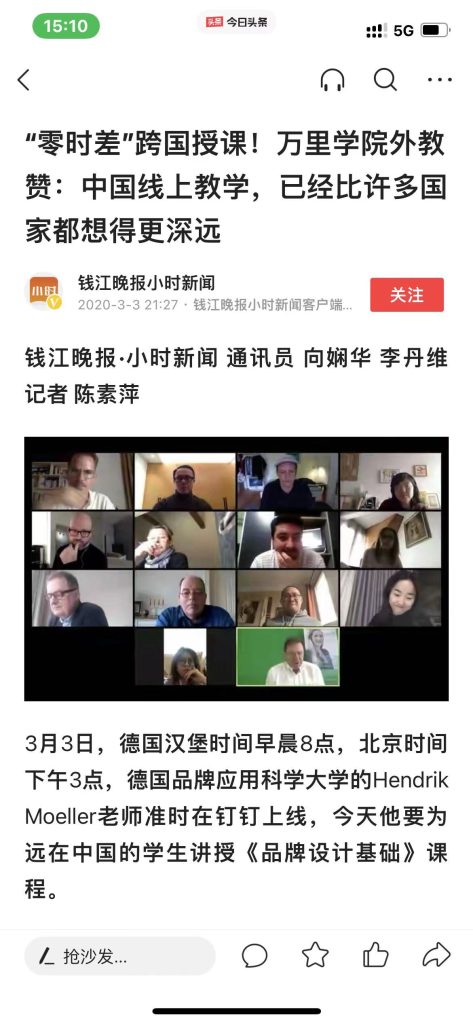 《钱江晚报》“零时差” 跨国授课!万里学院外教赞:中国线上教学,已经比许多国家都想得深远 首页 最新资讯 媒体报道 / 2021年03月02日 网页链接:https://baijiahao.baidu.com/s?id=1660149988709640753&wfr=spider&for=pc