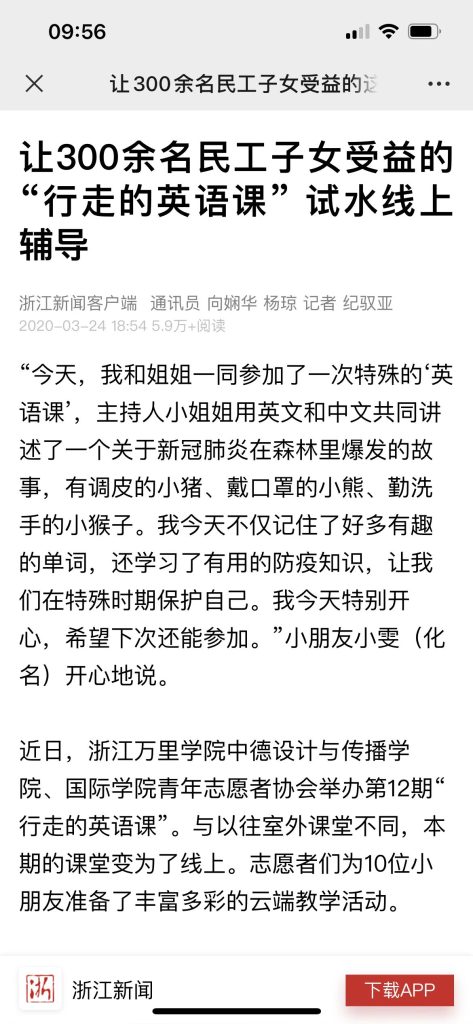 《浙江新闻》让300多民工子女受益的“行走的英语课”试水线上辅导