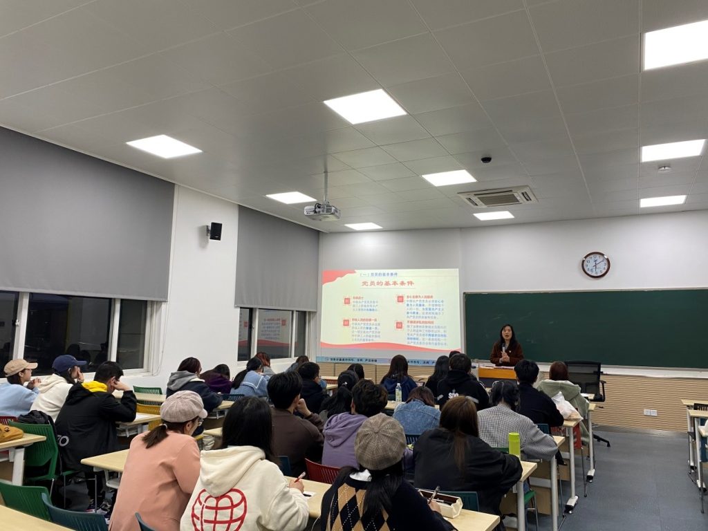 首先,丁亚军老师重点强调了成为党员的基本条件,党员要做一名先锋战士并全心全意为人民服务;其次讲解了党
