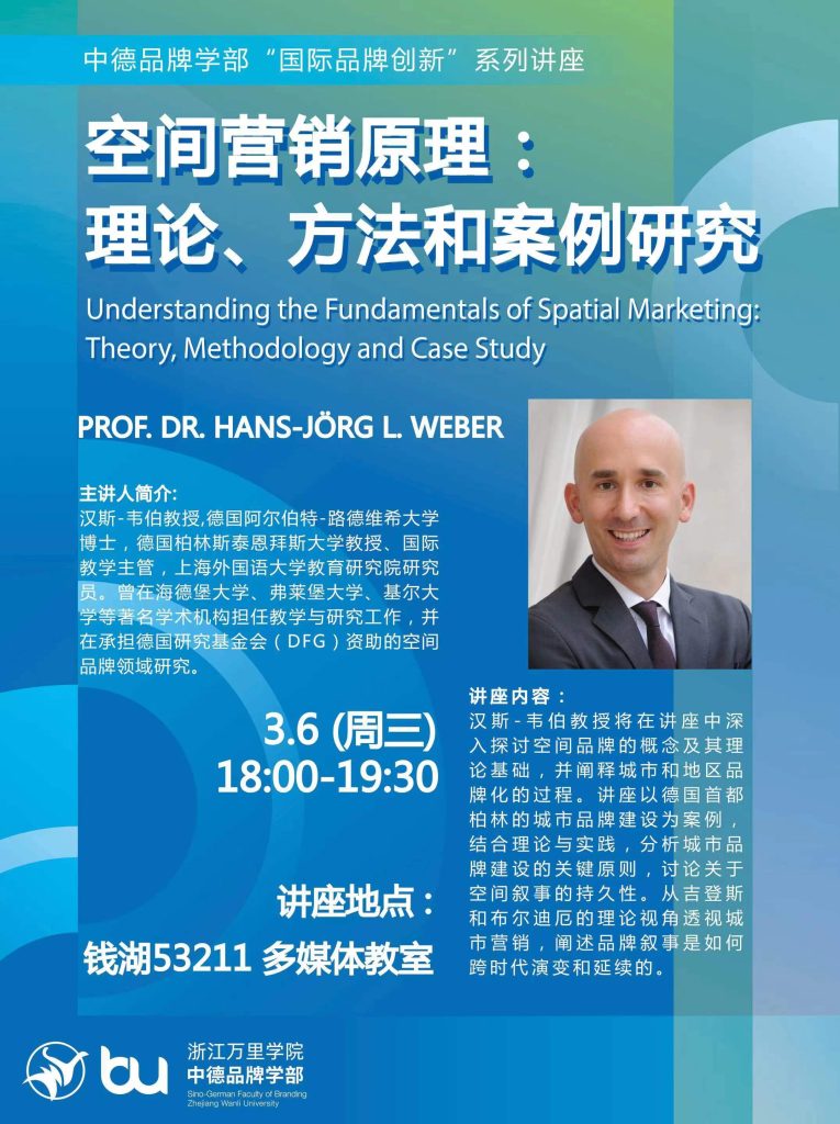 In his lecture, Prof. Hans Weber will delve into the concept of spatial branding and its theoretical underpinnings, and explain the process of branding cities and regions. Using the city branding of Berlin, the capital of Germany, as a case study, the lecture combines theory and practice, analyzes the key principles of city branding, and discusses about the durability of spatial narratives. Perspectives on city marketing from the theoretical perspectives of Giddens and Bourdieu illustrate how brand narratives evolve and persist across time.