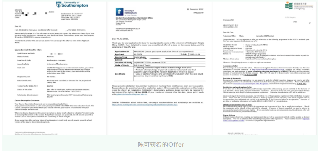 So far, Chen Ke has received a lot of support fromUniversity of Southampton, UK, University of Nottingham, Ningbo, Hong Kong University of EducationAfter graduation, he will choose to pursue further studies at the University of Nottingham Ningbo to continue to improve himself.