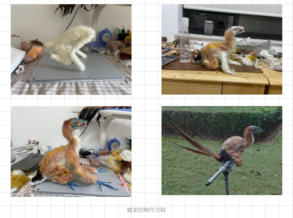 Sun Kaixin has loved paleontology since he was a child, especially hand-robbing dragons."Hand pirate dragons are more like birds, most of them have feathers. I wanted to present them with textured real hair one to one, which is why I came across the craft of wool felting, and subsequently got overwhelmed."