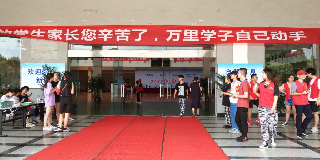 (Reporter Feng Bingxin) On September 15, 2018, Zhongde College welcomed the new students who enrolled in the 2018 class to report to school. Starting from 7:00 a.m., volunteers picked up the students at the South Bus Station, South Railway Station and Passenger Transportation Center respectively, and those who stayed on campus led the new students to go through the registration procedures at the school orientation site.