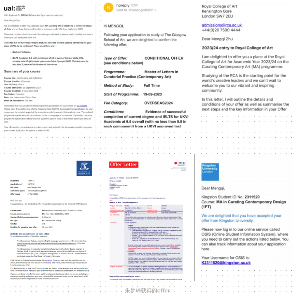 During the second two years of study in Germany, it is worth mentioning that Zhu Mengqi was responsible for the photography exhibition of filial piety and German culture and the exhibition "50+50: 50 years of diplomatic relations between Germany and China", an exhibition of brand design and cultural exchange between young people from Germany and China.These two experiences gave her hands-on curatorial experience and broadened her international professional perspective. During the curatorial process, Zhu Mengqi felt that her studies in Germany gave her easier access to international art information and helped her to build a cross-cultural buffer during her graduate studies. Studying in a cross-cultural environment often stimulates diverse inspirations, which in many cases are valuable additions to her projects. This rich curatorial experience has not only enhanced her cross-cultural communication skills, but has also helped her later in her education. In the curatorial process, Zhu Mengqi put some methods and models into practical application, which was supported and encouraged by her teachers. Such practical opportunities are hard to come by in China. These two internship experiences became a bright spot in her resume and provided her with strong support for her interdisciplinary application to the graduate level in the UK.