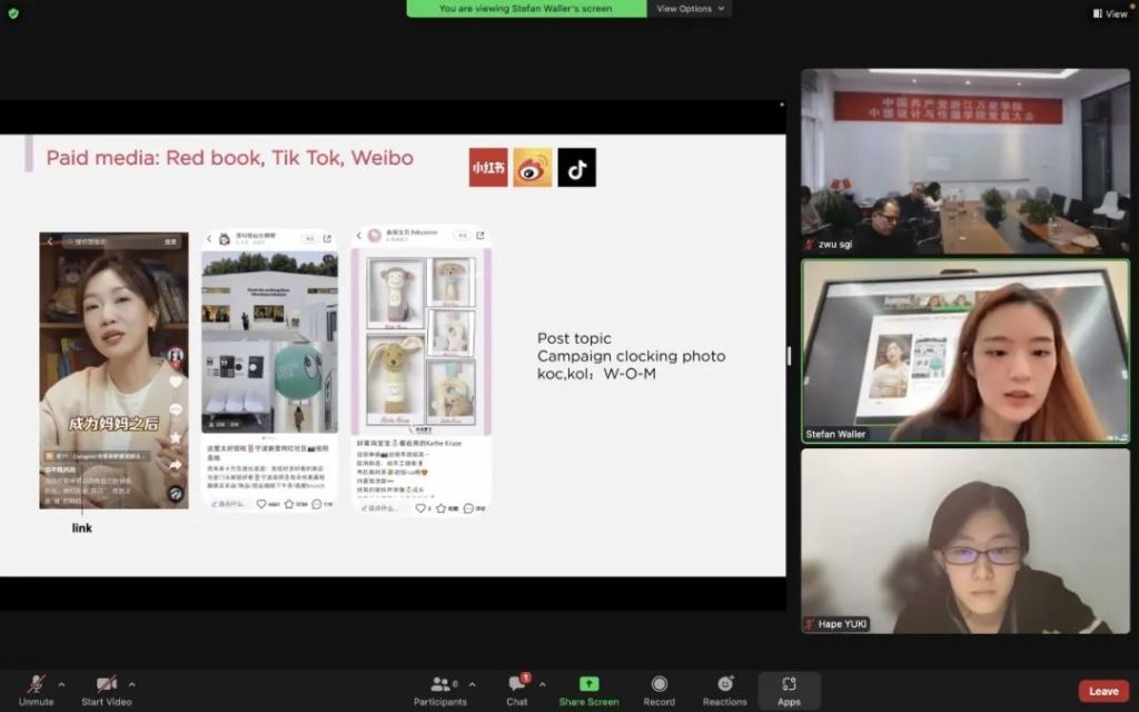 The Sino-German fusion team of instructors and teaching assistants also provided a lot of guidance to the students. Mr. Zhou Xinyin, a brand communication major, guided the students in establishing the framework of the pre-research strategy and the development of the media plan. Stefan Waller, a German professor, provided the students with implementation advice and route references in the post-visualization section.