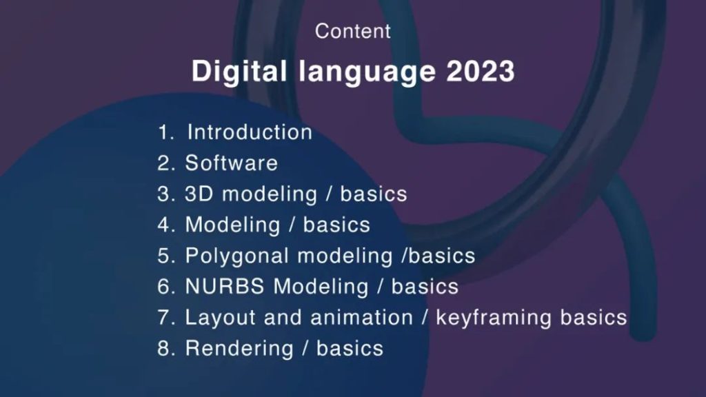 This course focuses on practice and aims to train students to use 3D modeling language forAbility to narrate, think independently, design and communicate across cultures.