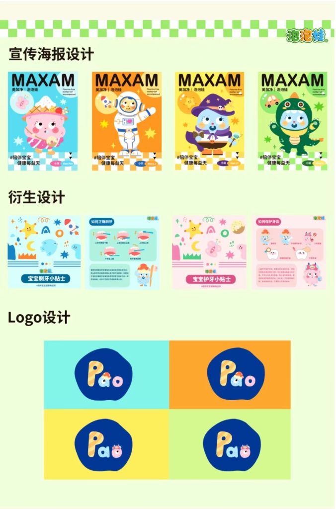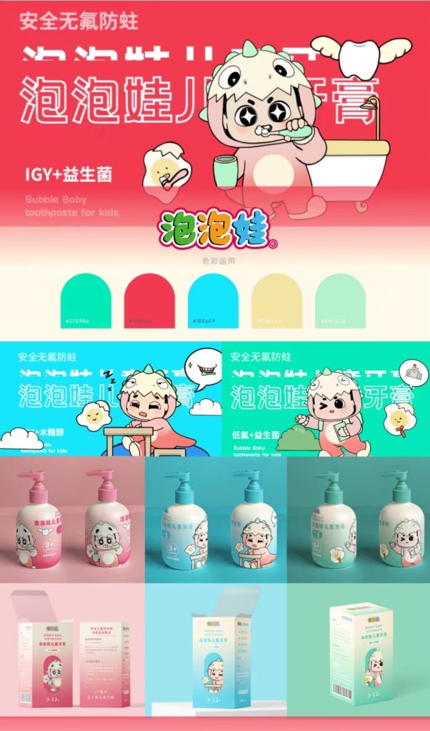 leave it (to sb)Li Wanying (Team Leader), Zhang Jiayi, Lei YaxuanThe "Chihuahua" group was formed around the "Bubbles Children's Toothpaste" by Megaman.IGY"Patented technology to develop the design, with a unique creative presentation of a group of IP. unlike the traditional single IP, they use the "1+1"The IP model allows for more flexible and diverse scenarios of IP utilization. The main IP image is derived from the original IP and represents the child himself, while the secondary IP image links to the brand's patent and symbolizes the child's partner. The design incorporates a rich variety of costumes and actions, allowing the brand to showcase its products and promote them at different points in time. In terms of color, their design takes the form of a gradient, using visually contrasting three colors across the three products, presenting a clear product differentiation for consumers.