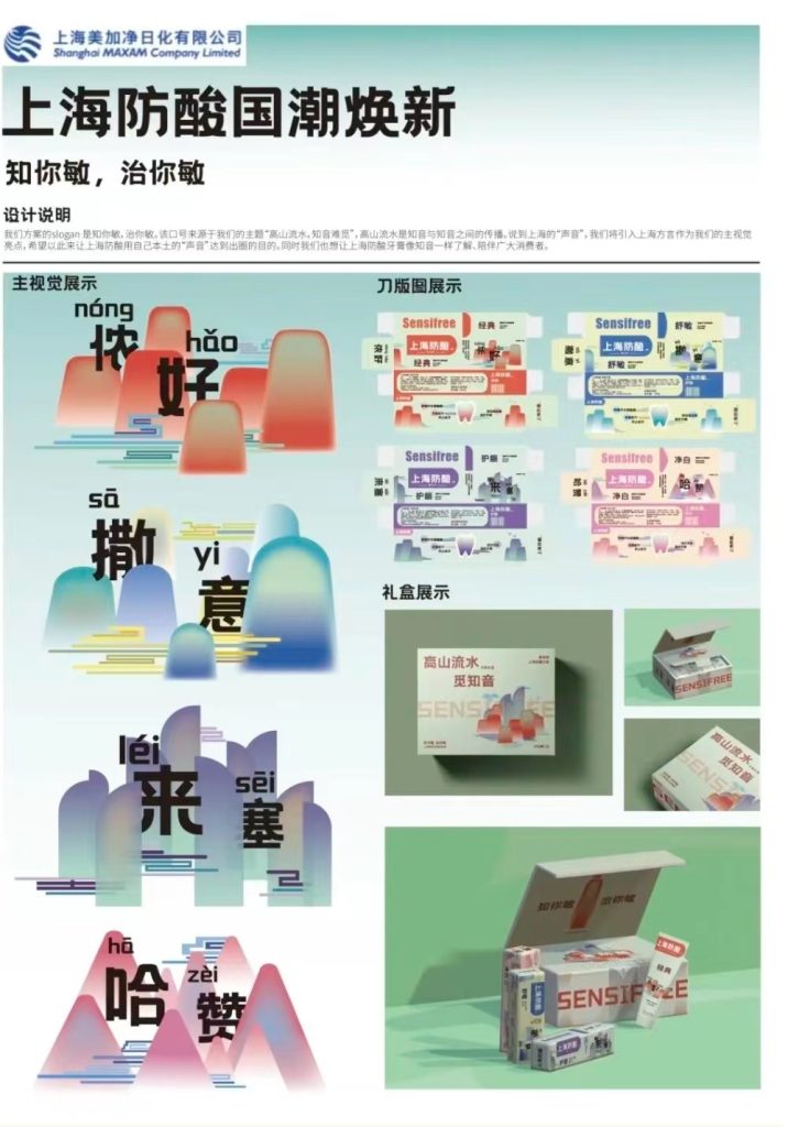 leave it (to sb)Chen Jiani (Team Leader), Huang Jialu, Chen Yuan, Shen Shijia, Chen ZiyiThe team "We are a team" focused on the packaging of the renewed brand, which was presented in two options. Program One:"Shanghai Acid Proofing, the king of cost-effective". This program is mainly designed to attract a small number of new young groups while retaining the original consumer base; Program 2: "Know your allergy, cure your allergy". The slogan comes from their theme "High mountains and flowing water, it's hard to find a soulmate", high mountains and flowing water is the communication between soulmates. At the same time, they introduced Shanghai dialect as their main visual highlights, hoping to let Shanghai Acid Proof use their own local "voice" to achieve the purpose of out of the circle, but also want to let Shanghai Acid Proof toothpaste like a confidant to understand, accompany the majority of consumers.