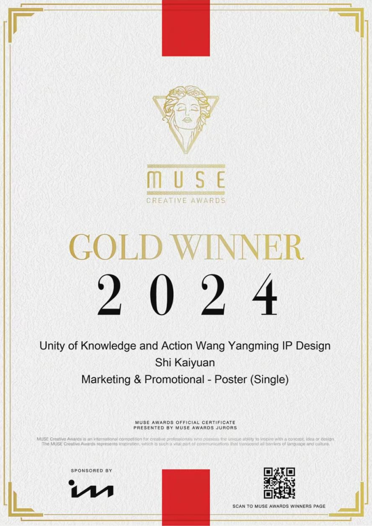 Recently, one of the most influential international awards in the global creative field - MUSE Creative Awards Muse Creative Awards 2024 was formally announced, Zhejiang Wanli UniversityShi Kaiyuan, a student of Visual Communication Design (Chinese-foreign cooperative education) in the Department of Sino-German Branding, grade 23.designer"Knowing and Doing - Wang Yangming IP Design"Standing out from the crowd of outstanding domestic and international entries.gold medal.