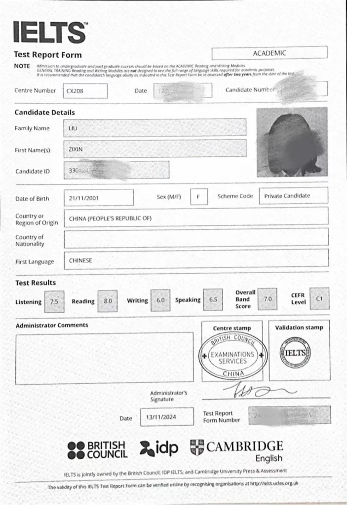 In addition, Liu Zixin also deeply recognizeslanguage achievementImportance in applying to graduate school abroad."I have benefited greatly from the quality of the IELTS learning environment provided by the academic department.Since my freshman year of college, I've been committed to building a solid foundation in IELTS.Achieved an IELTS score of 7 (8 in reading), which fully prepared me for my graduate school application."In addition to preparing for IELTS, Liu Zixin also participated in many professional competitions, such as College Students English Competition, 'Foreign Research Society・Guo Cai Cup' Reading Competition, Writing Competition, etc. She also won the provincial project in the College Students Innovation and Entrepreneurship Competition, and successfully published her dissertation and completed the project.