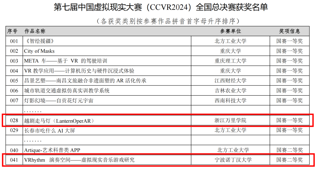 The 7th China Virtual Reality Grandexcel(CCVR2024)Allnational finalIt is organized under the guidance of the Organizing Committee of China Virtual Reality Competition, the Steering Committee of China Virtual Reality Competition, the China Computer Society, and the Industry-Academia-Research Alliance for New Engineering Science in Information Technology. The competition aims toActively responding to the innovation-driven development strategy, creating a high-level national virtual reality work exhibition and competition platform, promoting cooperation among industries, universities and research institutes, as well as promoting technological breakthroughs and application innovation in the field of virtual reality..The competition involves a wide range of specialties, including computer science and technology, virtual reality, digital media technology, digital media art, big data, artificial intelligence, network and new media, animation, environmental design, animation and architecture, etc., which fully demonstrates the cross-disciplinary nature of VR works and achievements.