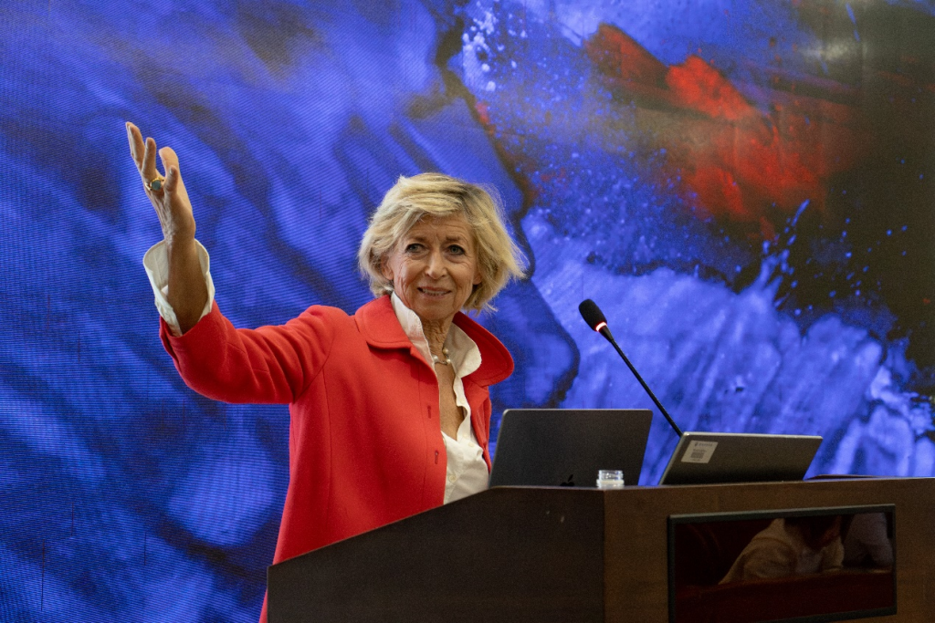 On the evening of November 4, the Sino-German Branding Department's "Haisi Cultural Exchange" lecture series was honored to invite Ms. Ingeborg zu Schleswig-Holstein, a contemporary German artist and a member of the European royal family, to give a special lecture to students and teachers of the university. Ms. Ingeborg zu Schleswig-HolsteinAbstraction and Reality(Abstraction and Reality).