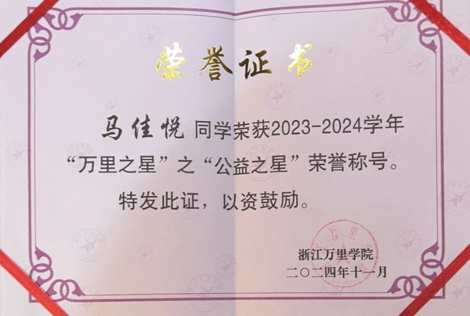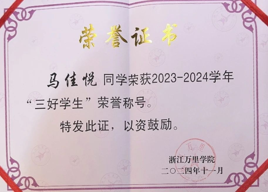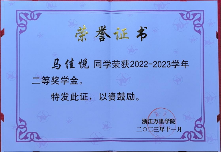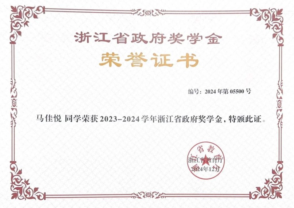 After continuous efforts, Ma Jiayue's grades gradually improved, climbing from 3.5 in her freshman year toA 4.43 with a perfect E in Advanced Math for junior year.Received a ranking ofspecialized firstHe also won the Provincial Government Scholarship, the Second Class Scholarship of the school, the Third Good Student, the Outstanding Student Cadre and so on.Multiple honors and awards.