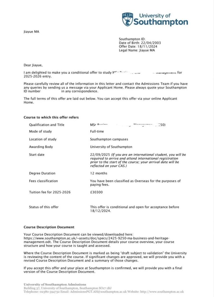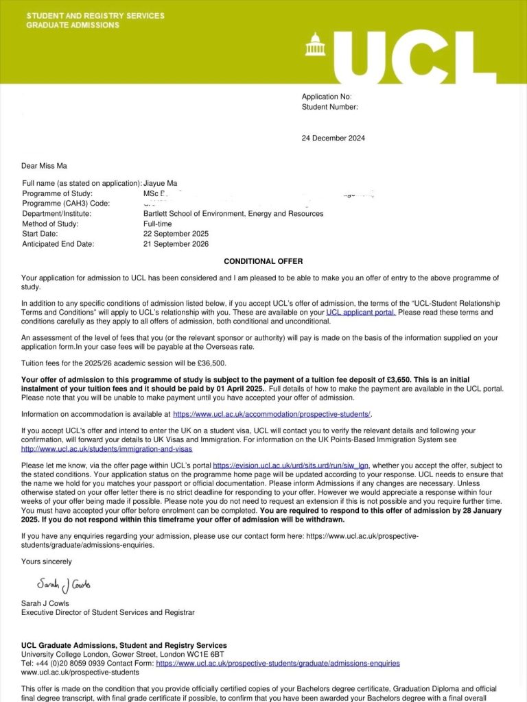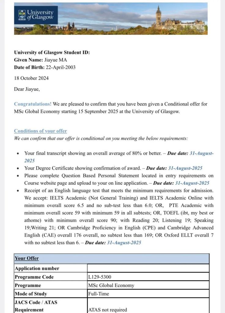 As of this writing, Maja Yue has received a letter from University College London (University College London, qs rank 9), two copies of The University of Sydney (University of Sydney, qs rank 18), University of Glasgow (University of Glasgow, qs rank 76), University of Birmingham (University of Birmingham, qs ranking 80), University of Southampton (University of Southampton, qs rank 81TotalFive QS Top 100world famousSix Offers.
