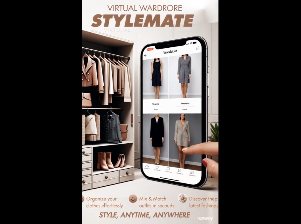 STYLEMATE: Your Virtual Wardrobe is a virtual closet app designed to help users manage their existing clothes, mix and match outfits, and discover new fashion trends. Through simple and stylish visual design and interactive animation display, the work presents the overall concept from the mobile app interface to the dynamic posters, demonstrating how to provide a convenient dressing experience for young fashion enthusiasts through digital means.