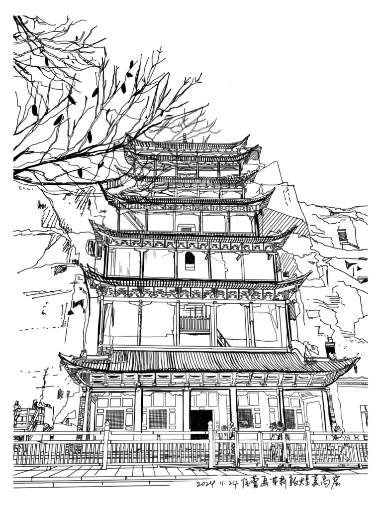 敦煌壁画上丰富多样的图案和精妙绝伦的构图,让我对图形设计有了更深层次的理解。我们也通过摄影和速写的方式记录下来。这次研学,让我深刻认识到,艺术源于生活,只有深入生活、观察生活,才能创造出打动人心的设计作品。