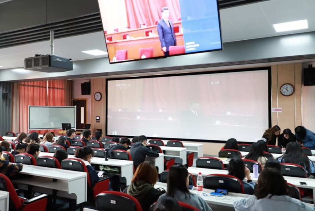 At 10:20, the students watched the big screen with great anticipation, waiting for the start of the "Commemoration of the 100th anniversary of the May 4th Movement" and the first tidal wave of applause. Soon, the leaders of the new era appeared and filled the audience. Wang Huning, as the host of the conference, opened today's conference to commemorate the 100th anniversary of the May Fourth Movement.