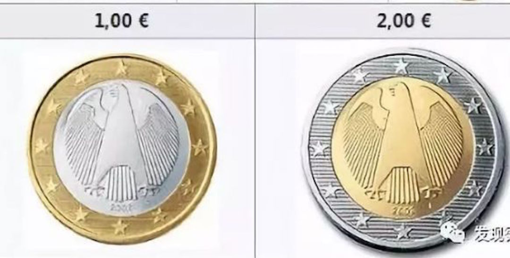 The design on the left represents the ancient Chinese money, and the right represents the German coin with the federal eagle as the new national emblem after the German reunification in 1990.