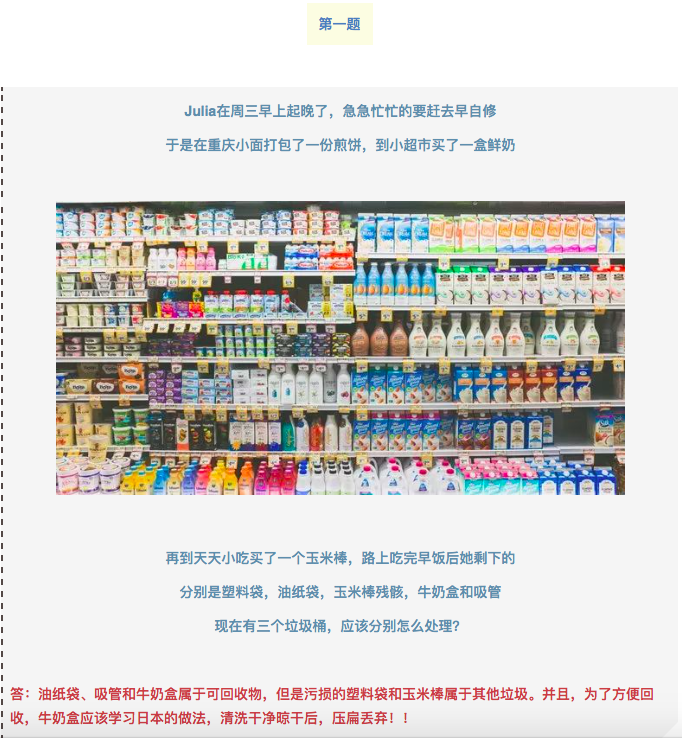 The separation of garbage in foreign countries starts earlier and is more elaborate. In the countries that students will go to in the future (especially Japan, the United States, the United Kingdom and Germany), the separation of household garbage is a very important consideration that should not be underestimated!