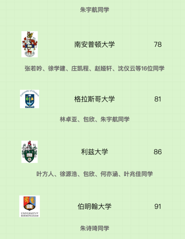 Received offers from the University of Southampton and the University of Nottingham Ningbo