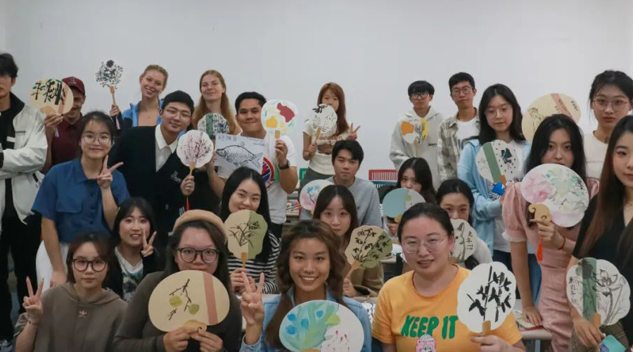 On the afternoon of October 28th , the Student Union of the General Branch of the Chinese-German Branding Department organized an event with the theme of"Practice the art of the fan and savor the taste of autumn."Themed Chinese Corner, the event allowed international students to learn to understand more about the Chinese language through fan painting.traditional cultureEnhance the understanding ofChinese outstanding traditional cultureinterest and enthusiasm, and to enhance enthusiasm for learning and teamwork.