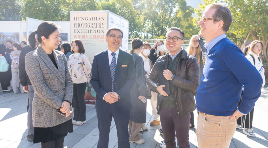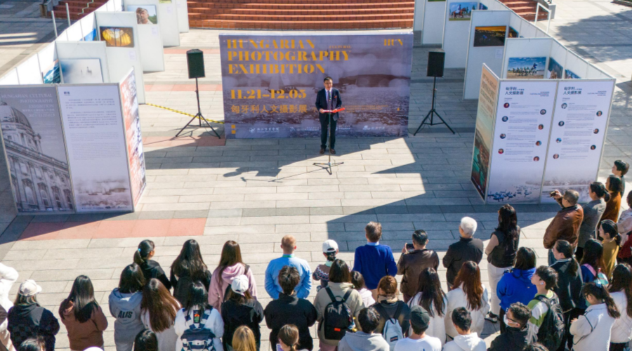At the opening ceremony.Ma Jianrong, Vice-President of the school, delivered an opening speech.Mr. Ma Jianrong, Vice President of the University of Hungary, said that Hungary is the first European country to sign the "Belt and Road" cooperation document with China. Vice President Ma Jianrong said that Hungary is the first European country to sign the "Belt and Road" cooperation document with China, and plays a crucial role in promoting cultural exchanges between China and Europe. Under the background of "One Belt, One Road", our university organizes the Hungarian Humanities Photography Exhibition (Ningbo Station) to bring the beautiful scenery and humanities of Hungary to Ningbo and the campus, which is helpful for the promotion of cultural exchanges between China and Europe.Deepening people's understanding of the cultures of the countries along the Belt and Road.Adding bricks and mortar to the building of a community of human destiny.