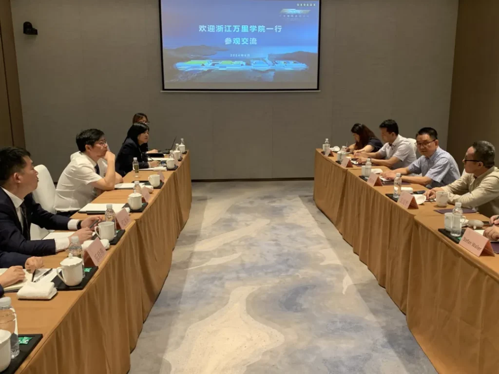 Recently, in order to broaden the channel of students' "internship + employment", build a platform for school-enterprise exchanges, and promote the efficient integration of production, learning and research.President of Zhejiang Wanli University, Mr. Lin Zhihua, led a group of 5 people, including Mr. Zhang Yiping, Director of Sino-German Branding Department, to visit Ningbo Convention and Exhibition Group and Ningbo International Conference Center to expand their jobs.. President Lin and his entourage were received by Ma Ju, Chairman of Ningbo Convention & Expo Group, and Cheng Jia, General Manager of Ningbo International Convention Center Management Co.