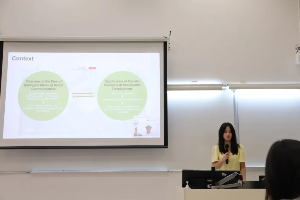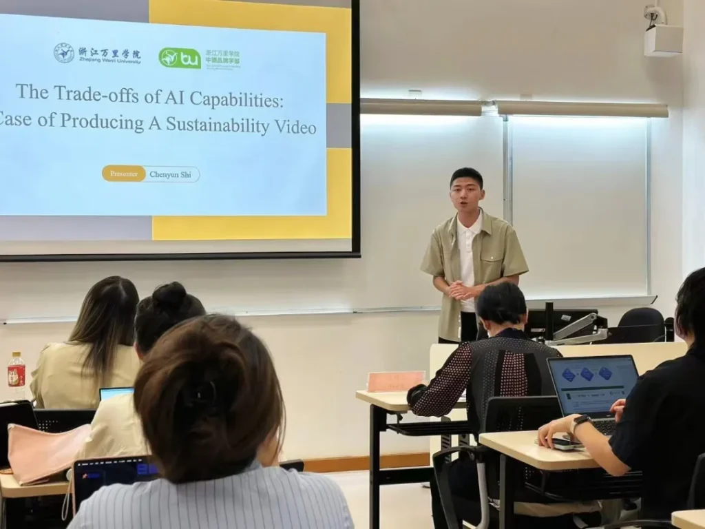 Visual Communication faculty at the Sino-German Branding SchoolDr. Li ShuaiThe guidance from theShi Chenyun from Class 23A1 of Exhibition Economics and Management (Sino-German 2+2 Dual Degree)Issued a paper entitledTrade-offs in Artificial Intelligence Capabilities: The Case for Making Sustainable VideosThe presentation. He explored the application of AI technology in the field of sustainable video production and the capacity trade-offs it involves, illustrating how AI can be used to create content and find a balance between technological capacity and sustainability goals, providing participants with new perspectives on the application of AI technology in the digital age.