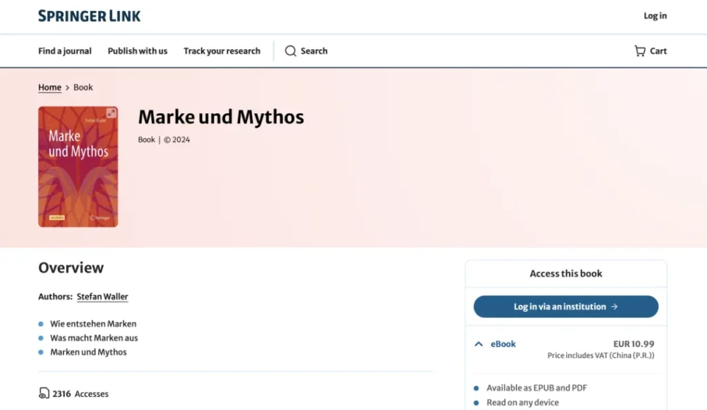 Brand Science Institute's new book "Marke und Mythos" published by Springer Nature
