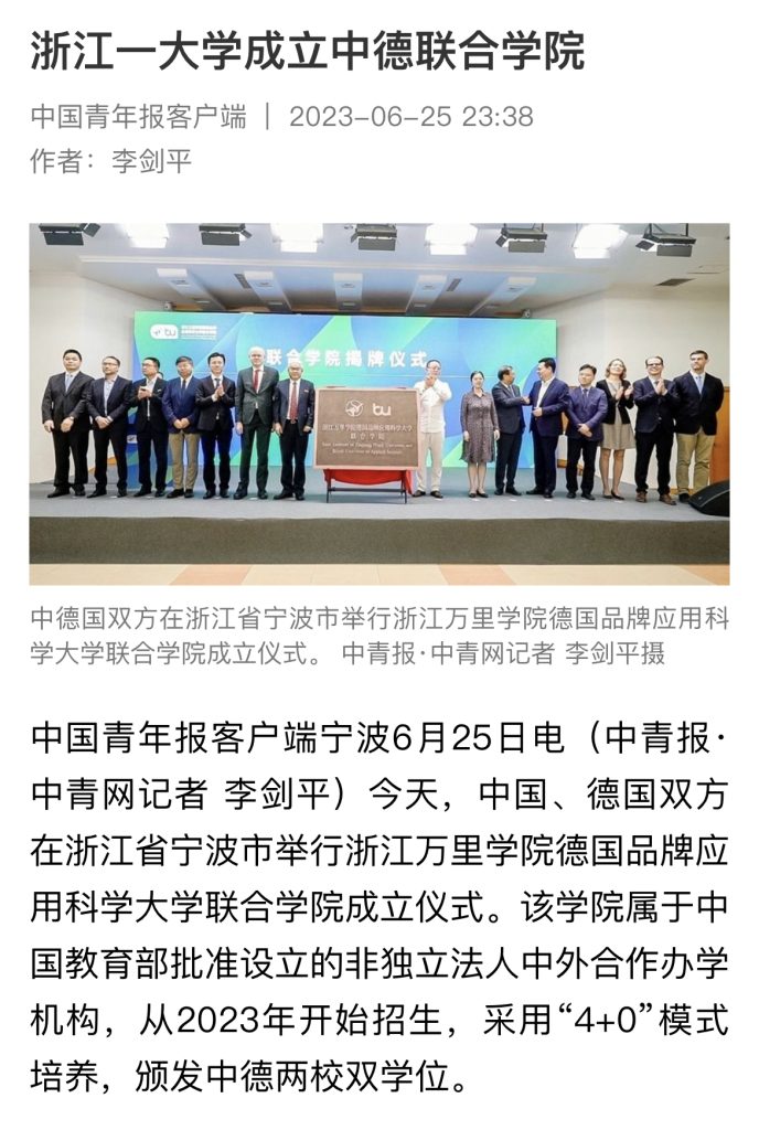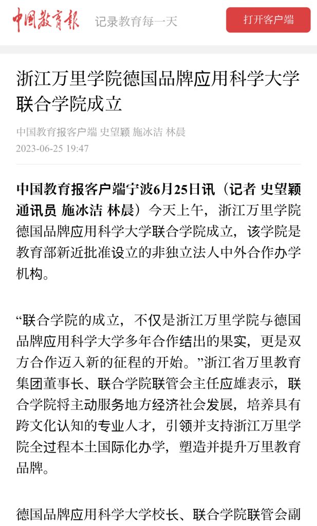 China Education News" Zhejiang Wanli College German Brand University of Applied Sciences Joint College was established / 2025.06.06 Article Link:http://newapp.jyb.cn/app_pub/zixun/tu Read More »